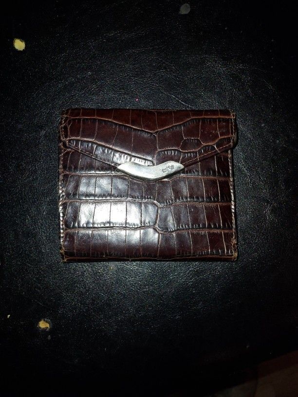 The wallet is a vintage Ralph Lauren product with a crocodile-embossed leather exterior and a sterling silver clasp closure. The metallic clasp often features an engraved logo.