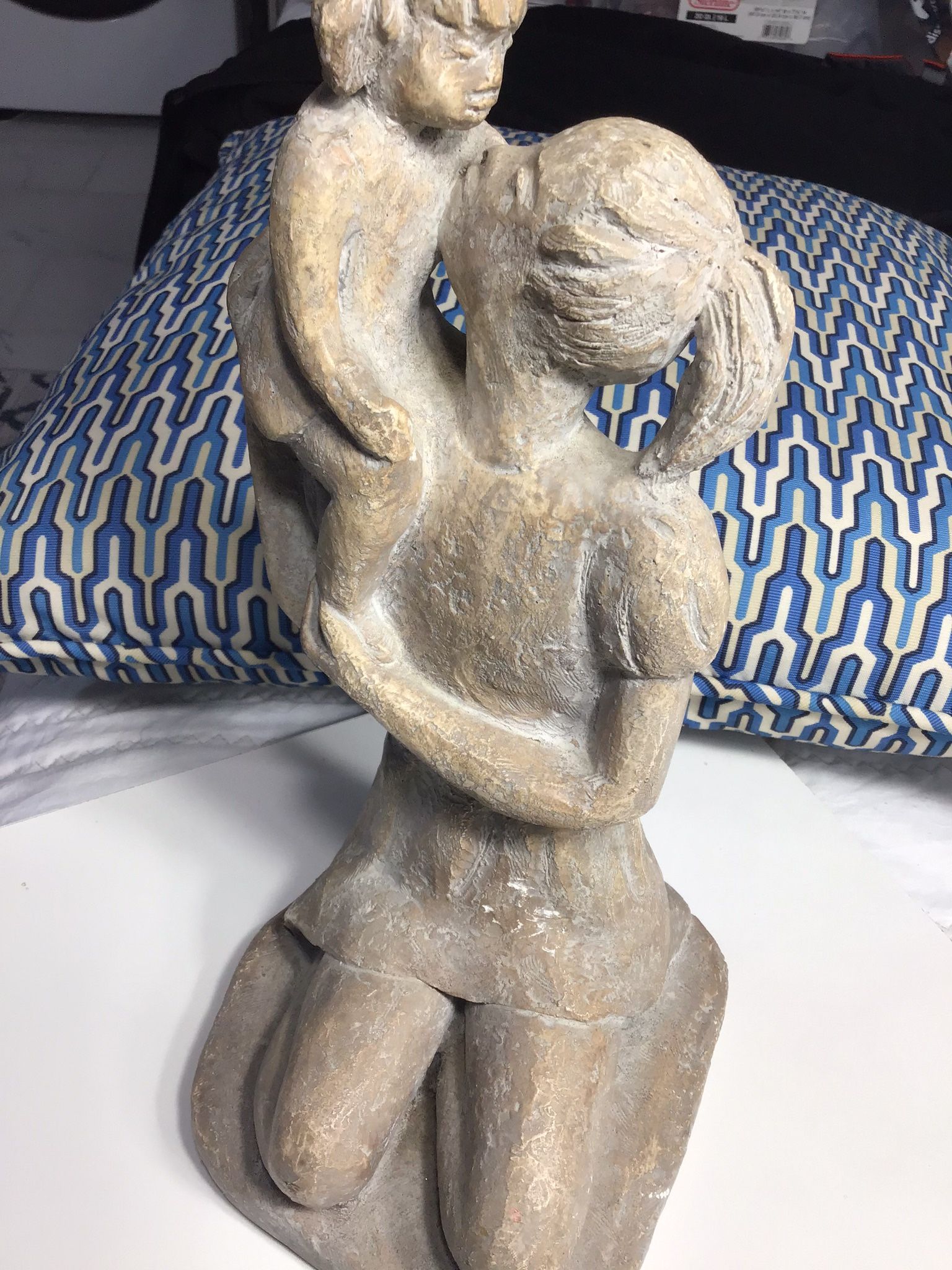 AUSTIN PRODUCTIONS VTG MOTHER AND SON SCULPTURE GOOD CONDITIONS FOR ITS AGE 12’HEIGHT AND WEIGHT ABOUT 5 SCULPTURE ON WHITE STONE GREAT DECOR PIECE FOR YOUR HOUSE OR OFFICE COMES FROM NON SMOKING HOUSEHOLD WE ARE FAST AND CAREFUL SHIPPERS SEE PICS PLEASE ONLY SERIOUS INQUIRES WE ACCEPT REASONABLE OFFERS