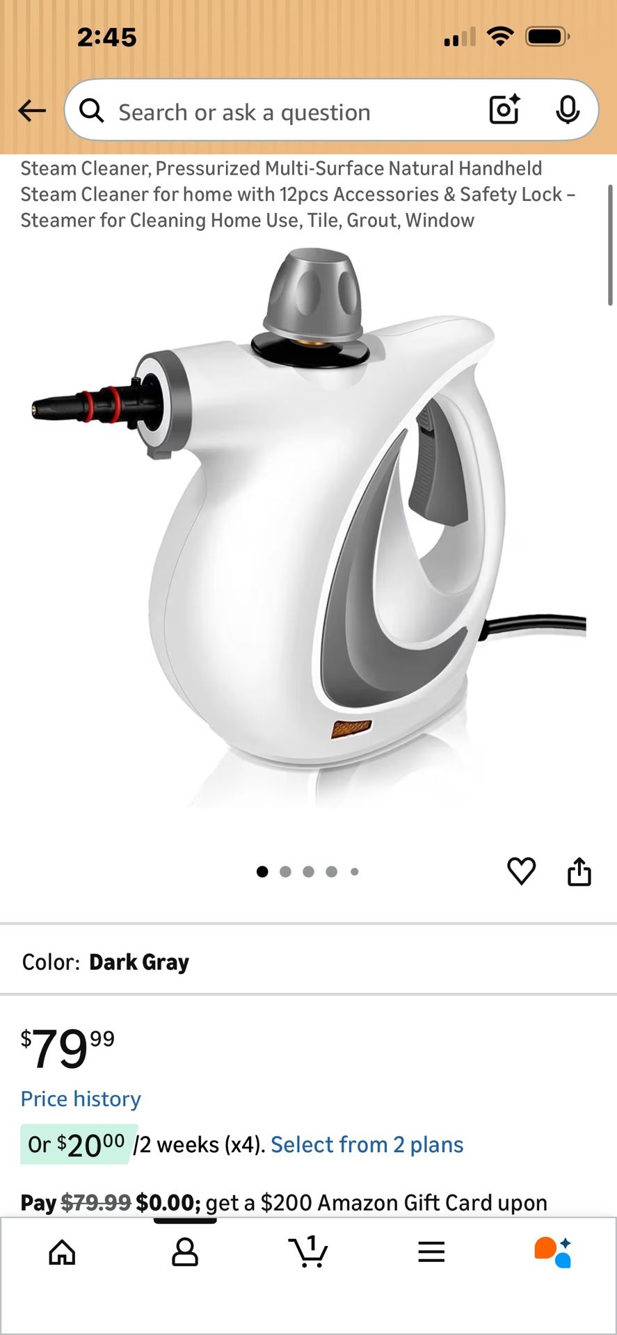 Steam Cleaner, Pressurized Multi-Surface Natural Handheld Steam Cleaner for home with 12pcs Accessories