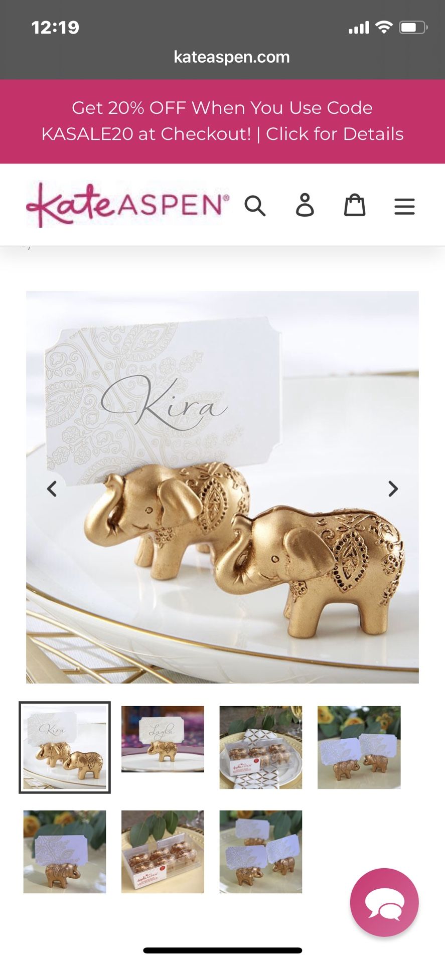Kate Aspen Golden Lucky Elephant Place Card Holders (Set of 6). I have a total of 96 Place Card Holders. You may purchase the entire stock for $3 per set of 6. The other option is to purchase a smaller quantity at $4 per set.