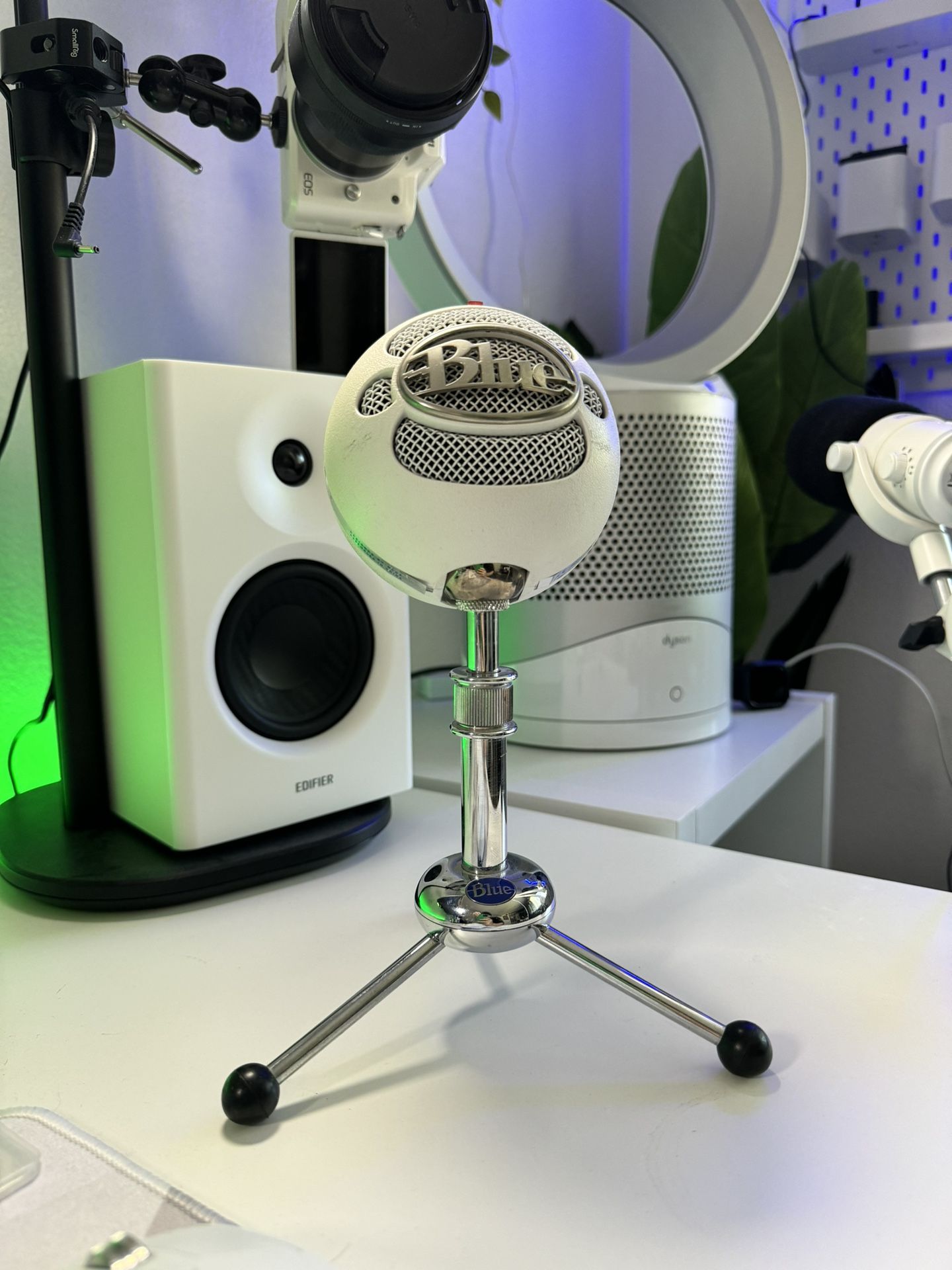 Logitech for Creators Blue Snowball USB Microphone for PC, Mac, Gaming, Recording, Streaming, Podcasting, Condenser Mic with Cardioid and Omnidirectional Pickup Patterns, Stylish Retro Design – White