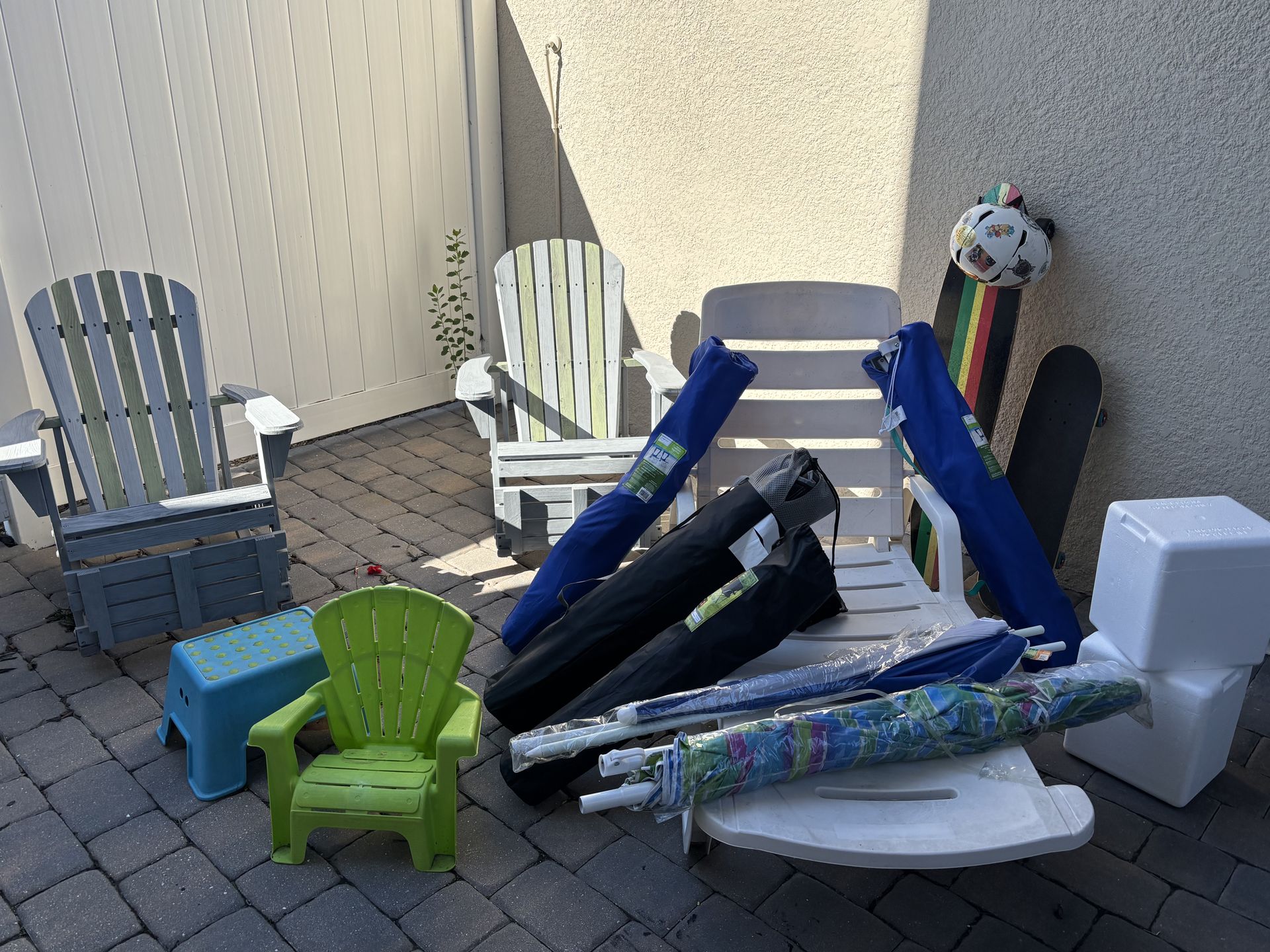 Huge community garage sale . We’ll have furniture, skateboards , bmx bike , like new beach chairs , umbrellas , tanning lounge , river tubes (new!) , Adirondack chairs , kids clothes , toys , utility shelves, home decor , coolers etc . Come get it ! All has to go ! Have much more than pictured ! This Saturday February 28th 9-2 pm Mallory park @ Lakewood Ranch , 12005 Cranston Way