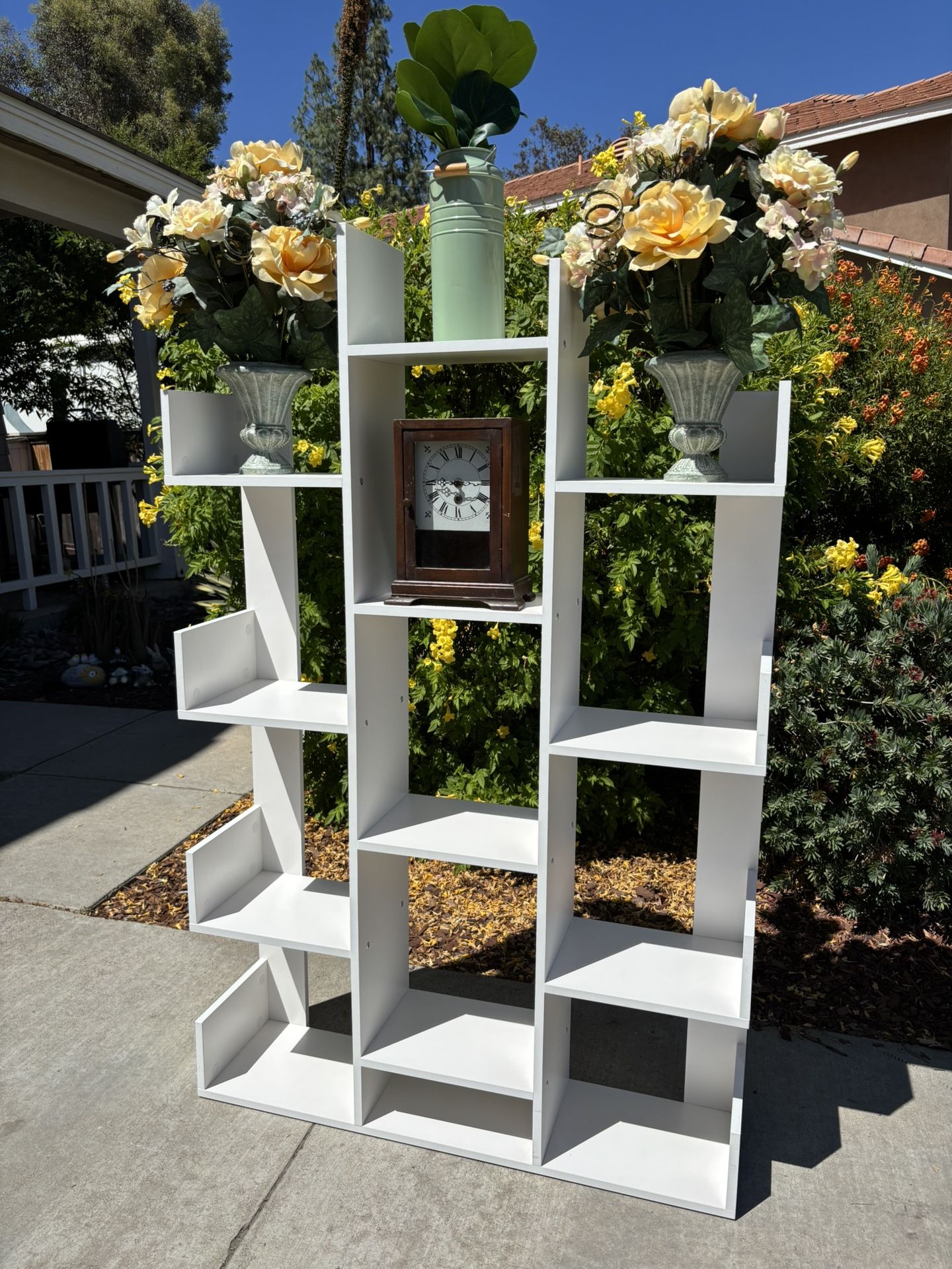 White Geometric Modern 13 Shelf Bookcase Excellent Condition