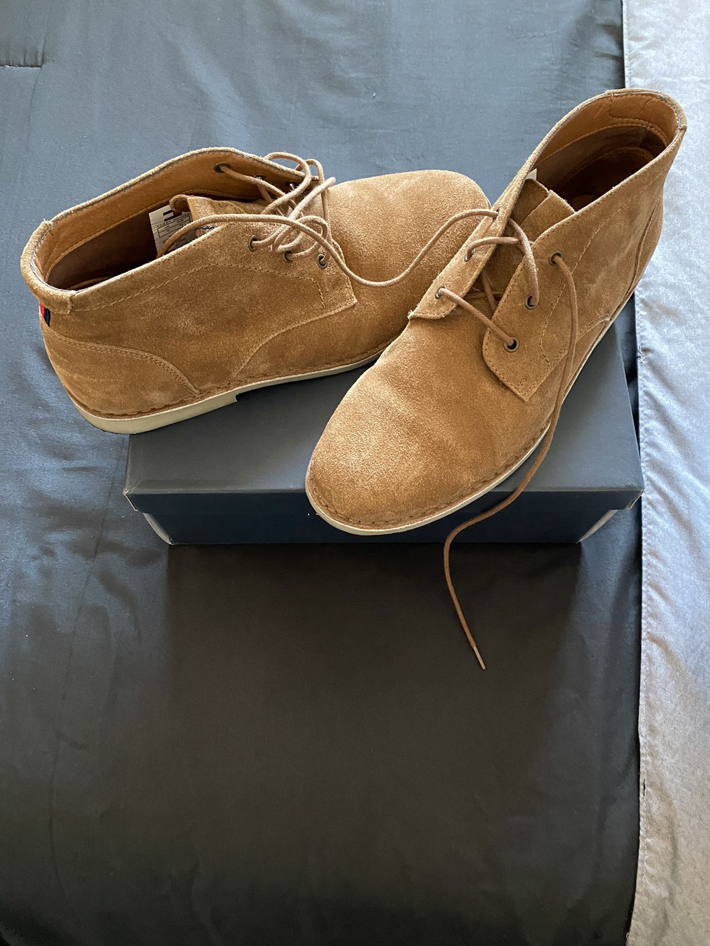 Tommy Hilfiger suede shoes . Used once but didn’t like how it fit me I am size 10 but every feet is different .