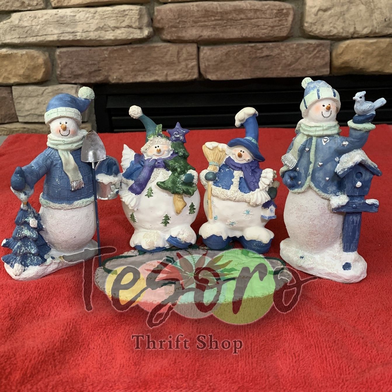 Set of 4 vintage snowman figurines Prices listed is for the set of 4 Great for table top decor Maybe a cute Christmas themed shelf ?