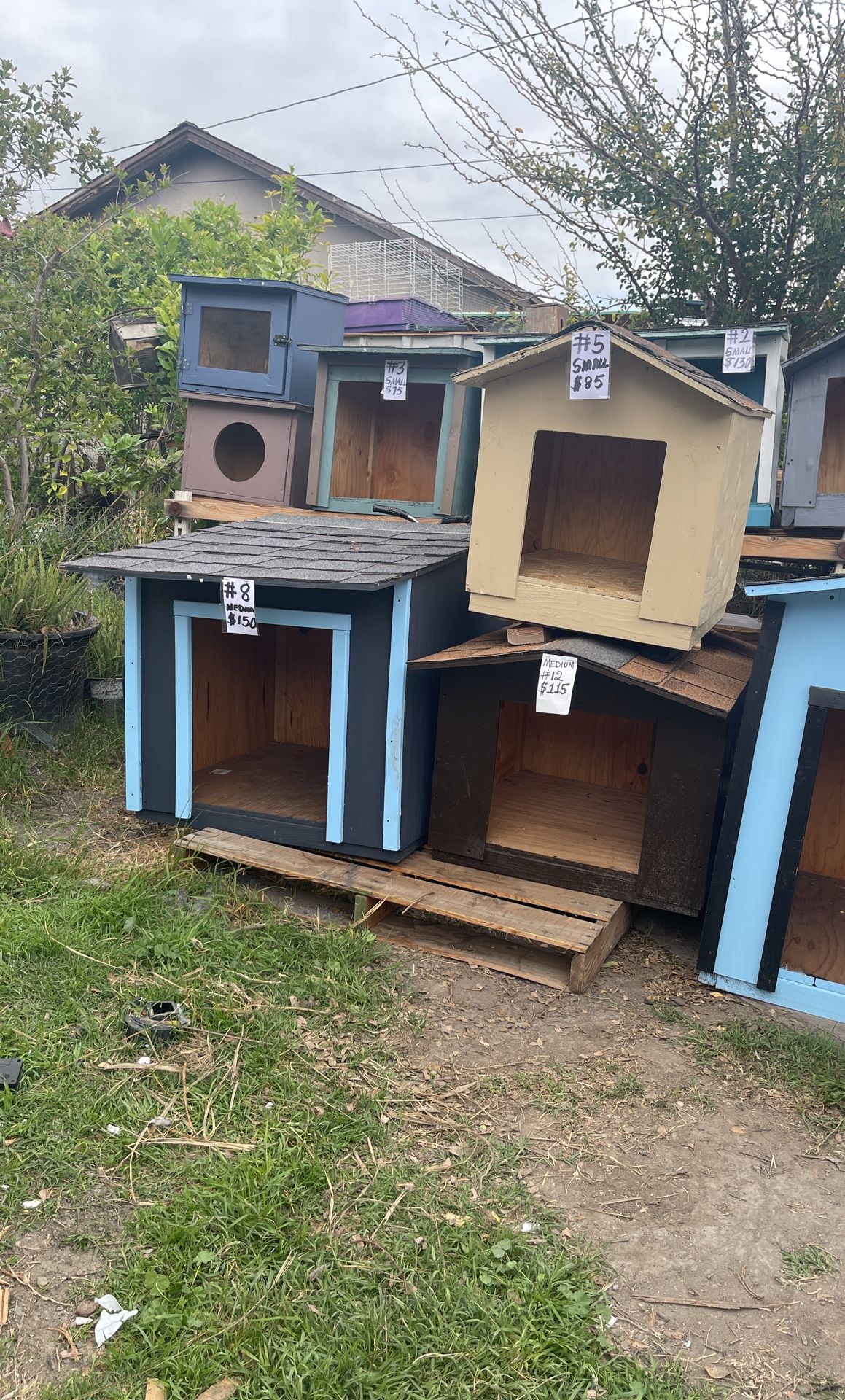 Only the small dog houses are $75 Please read all description Homemade dog houses I have many sizes different colors perfect dog house for this cold weather or hot weather. Keep your doggy warm and safe hit me up and I’ll give you a price and a good deal. If you take more than one, houses build with new material waterproof rooftop, all brand new price depends on house size local delivery available for extra charge you’re more than welcome to come and look at them