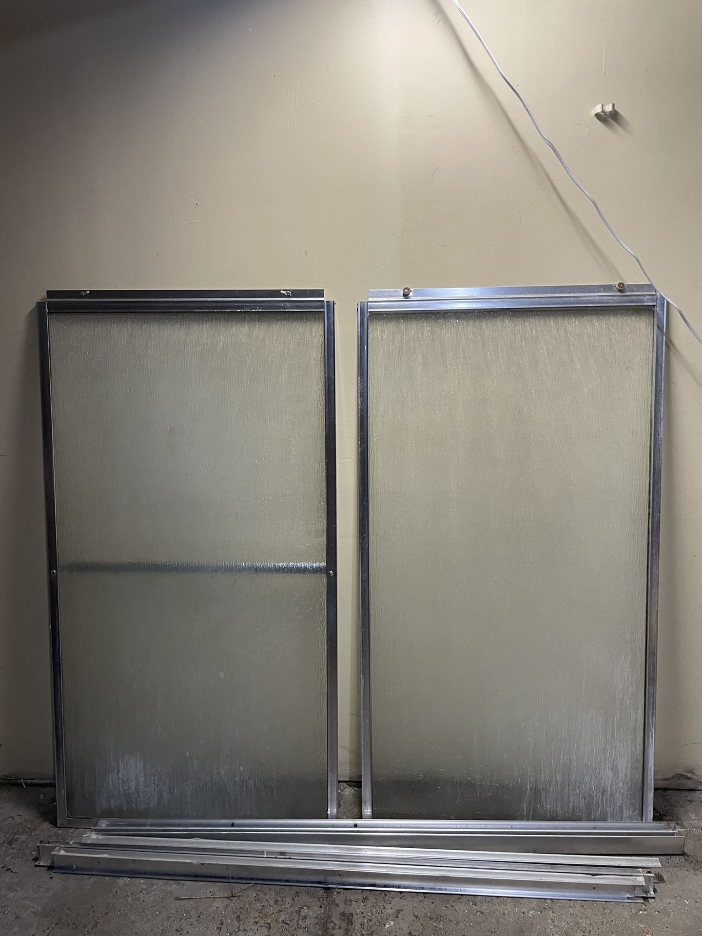 No cracks on glass just needs to be cleaned up Track has a small dent but not noticeable while using
