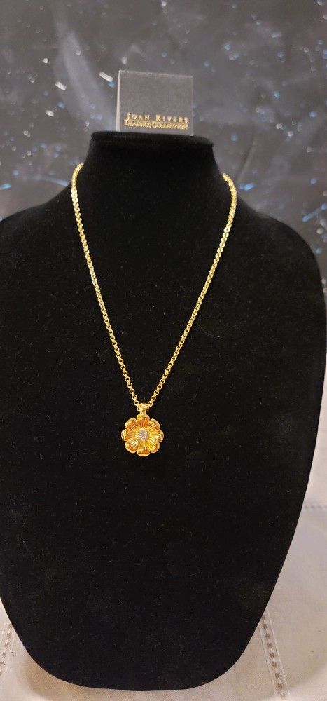 JOAN RIVERS Gold Tone & Clear Crystal Flower Pendant Necklace High Fashion Costume Jewelry 22in chain