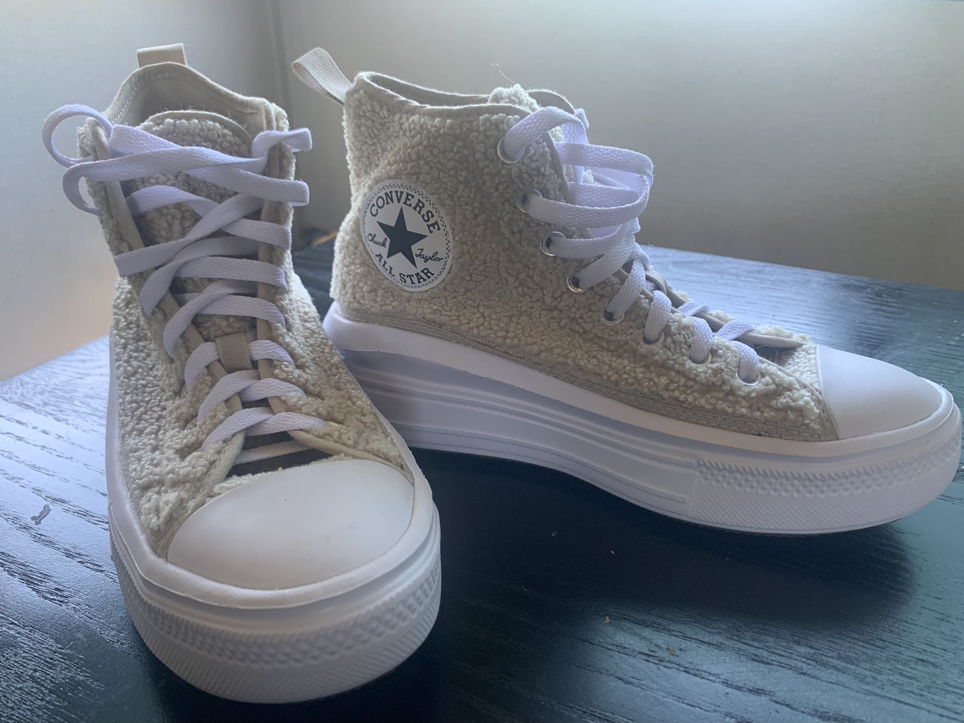 Girls or women’s converse shoes fluffy high top cream color size 6. New unworn conditon. Pick up in El Cajon alpine or clairemont.