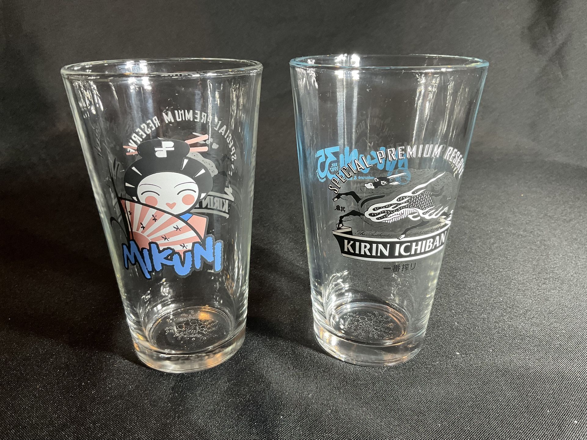 PAIR OF KIRIN ICHIBAN BEER GLASS 16oz SPECIAL PREMIUM RESERVE MIKUNI