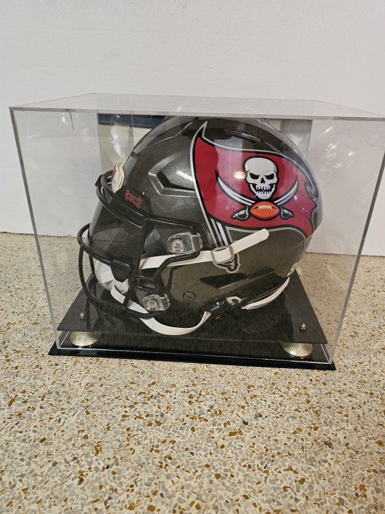 Buddy got it signed by Warren personally. He went into the locker room & grabbed a helmet & signed it. Case isn't mint & helmet shows signs of action. Obviously not worn by Sapp but legit helmet!