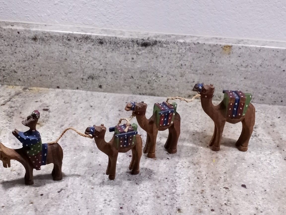 Hand carved olive wood Jerusalem caravan decorative mini scene Christmas religion baby Jesus