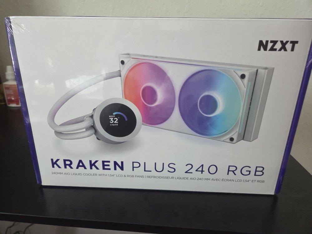Selling a brand new, never opened NZXT Kraken 240 RGB in Matte White. This is a factory replacement I just received directly from NZXT. I swapped to an air cooler while waiting, so I no longer need this one. This is the high-end model featuring the customizable 1.54” LCD screen on the pump head to display your own GIFs, images, or real-time system temps via NZXT CAM. This exact same unit is selling for 200 plus tax and shipping on Amazon right now, so you're getting a good deal here.