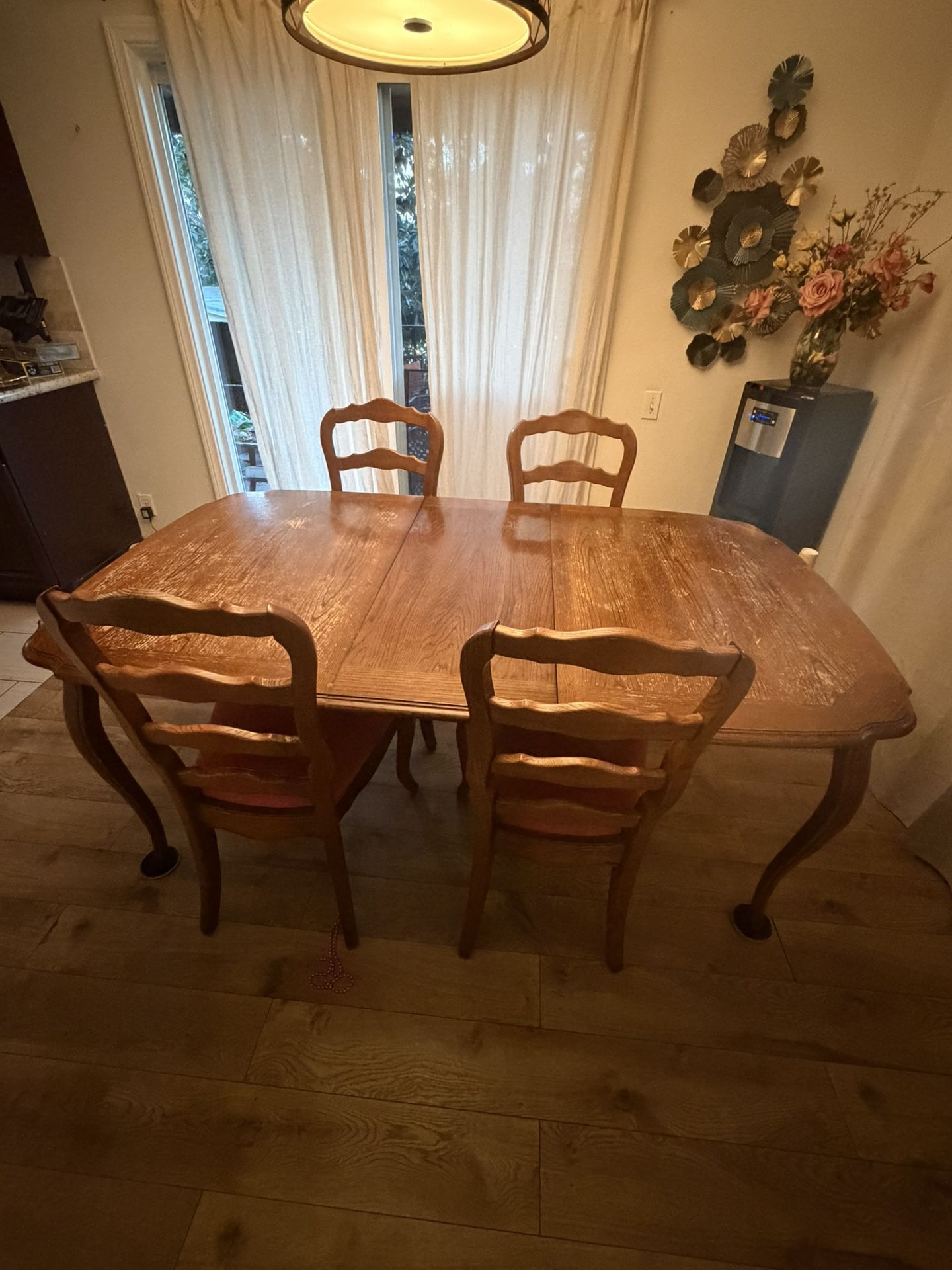 Extension can be taken out to seat 6. 8 chairs asking 150 obo