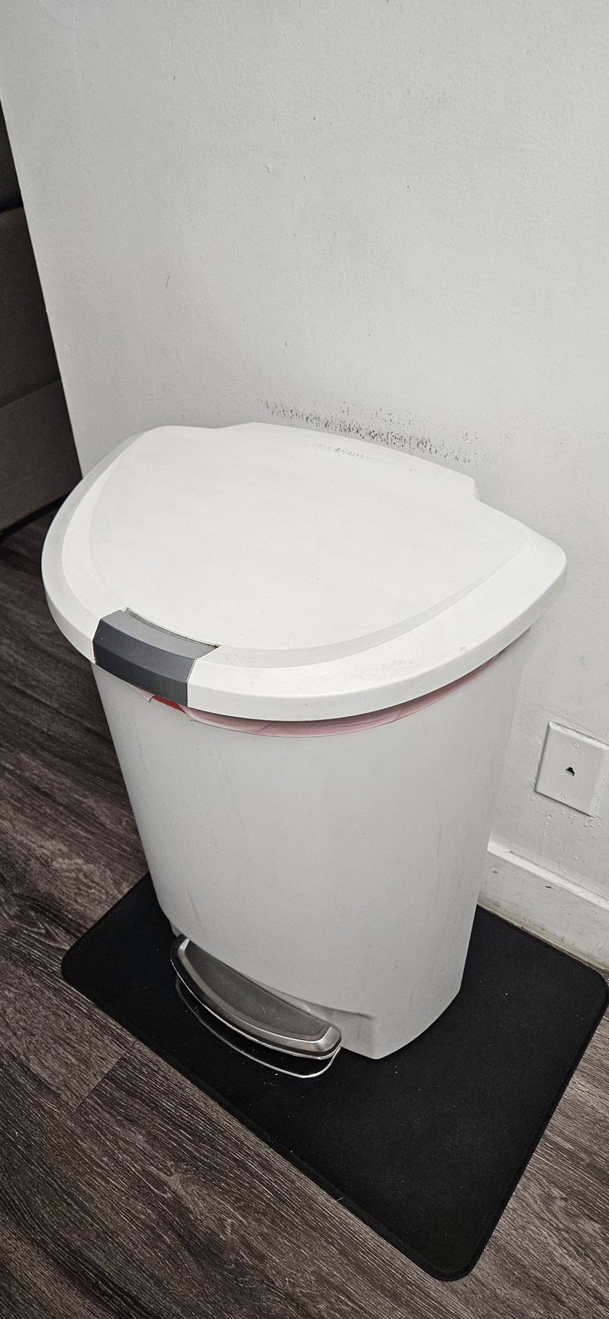 simplehuman 50 Liter Semi-Round Hands-Free Kitchen Step Soft-Close Lid Trash Can, White, purchased 3 years ago on Amazon. Black mat included. MOVING SALE - must pick up Feb 27 or 28 in Koreatown