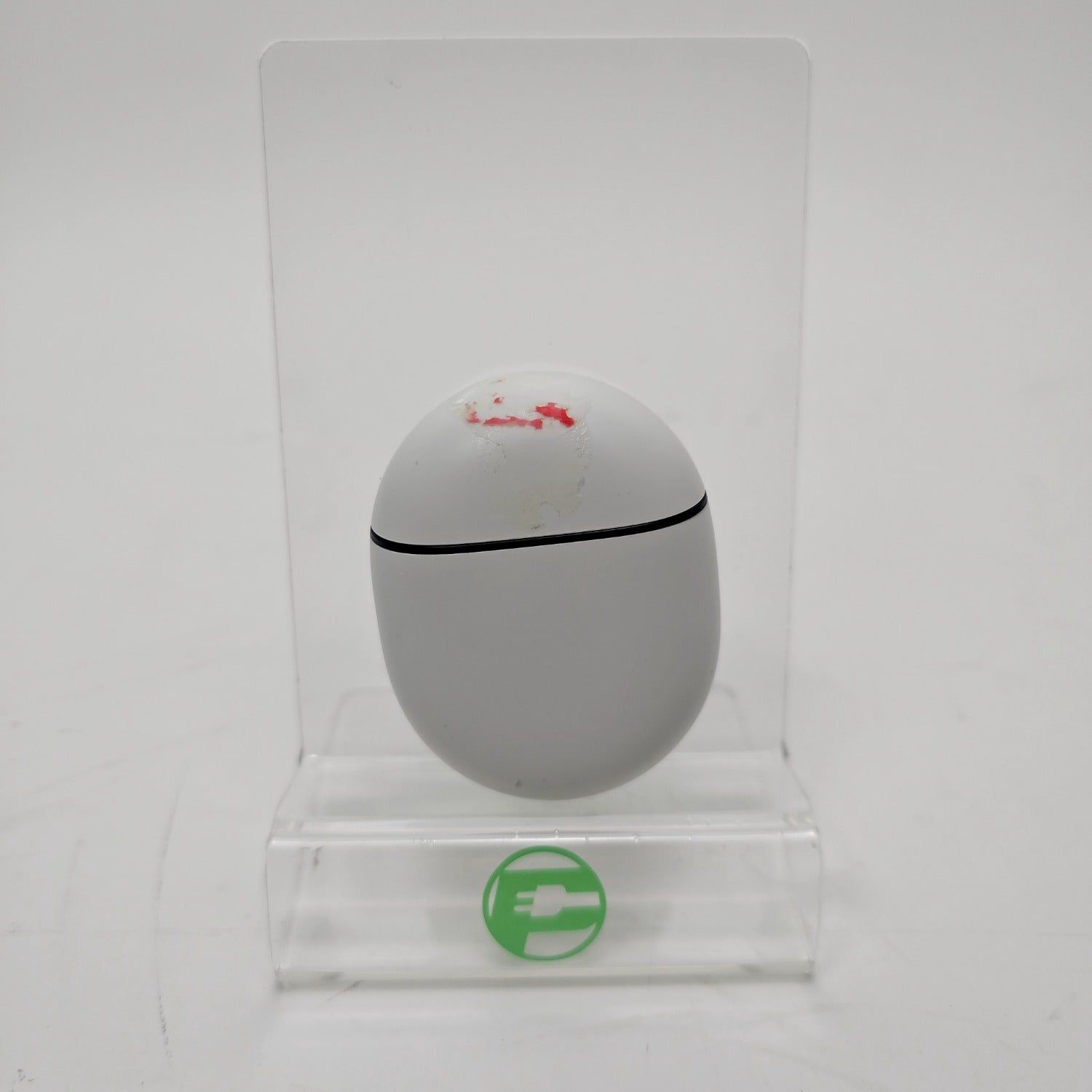 The buttons have no signs of heavy use or wear. The hinges are in good condition with minor signs of use. The ports are clean and in good condition. The earbuds are in good condition and clean. The charging case has some discoloration on it.