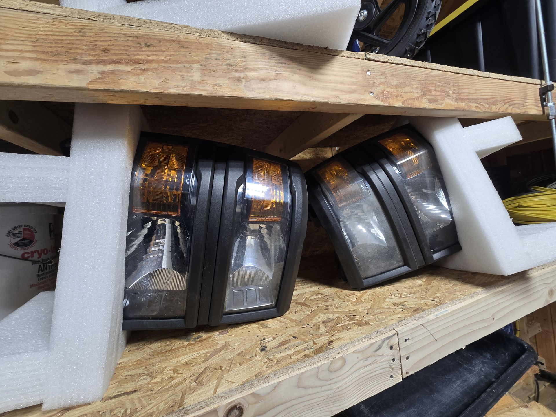 2014 Silverado headlights off of a work truck black trim black bumpers. Lights have black trim they are used no broken tabs no deep scratches. lenses need to be polished. Factory GM parts. 40 bucks for the pair I think is fair or make offer