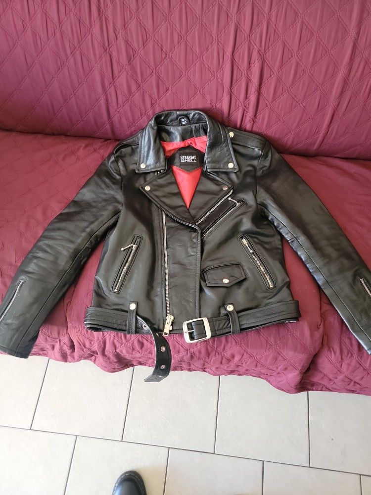 Removable STH engraved metal church key hangs from inside pocket. Slim fit. Full grain buffalo napa leather is 1 – 2 mm thick. Removable belt. Non-quilted. Durable YKK zippers. One STH engraved snap for subtle branding. Functional pockets. Size 38 Short Slim fit: 38in chest Jacket specs: Chest across, armpit to armpit 20 in / 51 cm Full chest 40 in / 102 cm Body length 24 in / 61 cm Sleeves 24 in / 61 cm