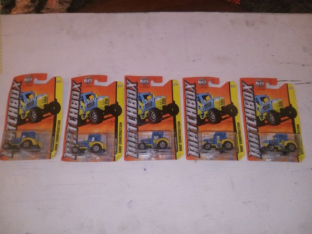 (5) MATCHBOX MBX CONSTRUCTION TRACTOR STILL IN BOX -CARDBOARD IFY ON COUPLE PIECES BUT OTHERWISE GREAT CONDITION -MODEL#: YO(contact info removed) -YEAR 2012 -ASKING 50 FOR ALL FIVE OR BEST OFFER -TONS MORE MATCHBOX AND HOT WHEELS FOR SALE AS WELL