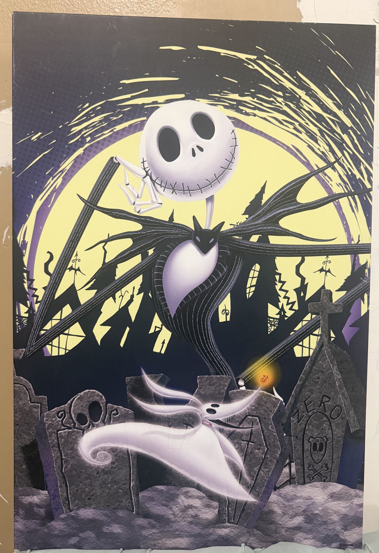 MOVING OUT SALE!! Jack Skellington wall frame. In good condition.. 16in x 24in
