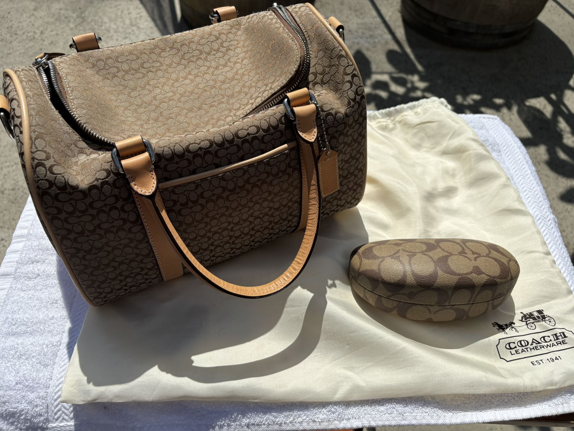 Travel tote(accessories bag) and matching glasses case. Includes storage bag. Used but great condition.