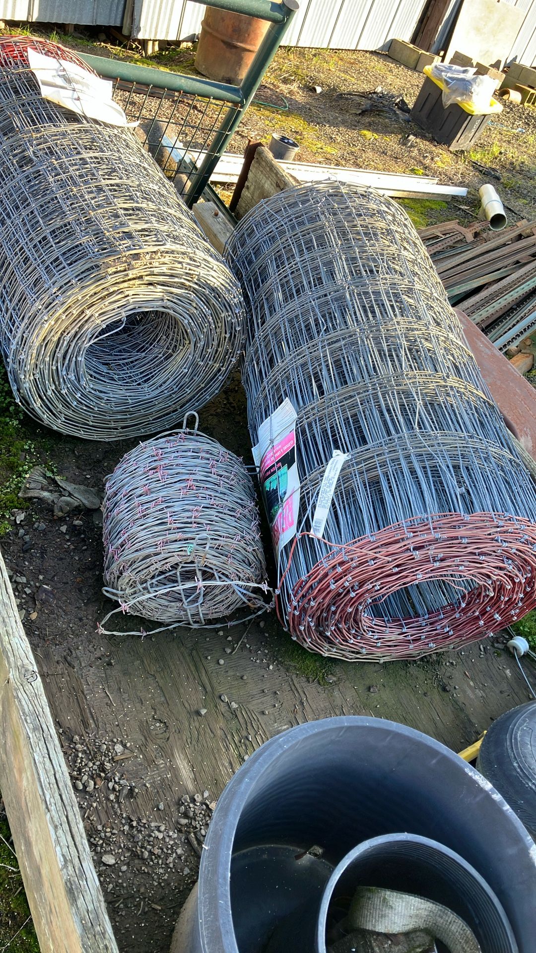 Two Rolls Of Red Brand Wool And Wire Fence 16 Foot Gate And One Roll Of Bob Wire