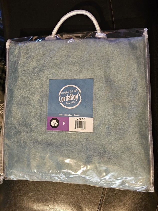 Full size. Has mattress and cover. New in package. About 4' across in beanbag form. Cover is more teal that in the picture. Smoke free home