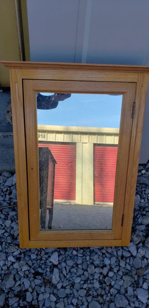 Oak Wood Medicine / Bathroom Cabinet with Mirror. Nice piece and solid. As shown. Measures- 28" T x 20" W x 6" D $60 / Lorain-Vermilion pickup only Cross posting