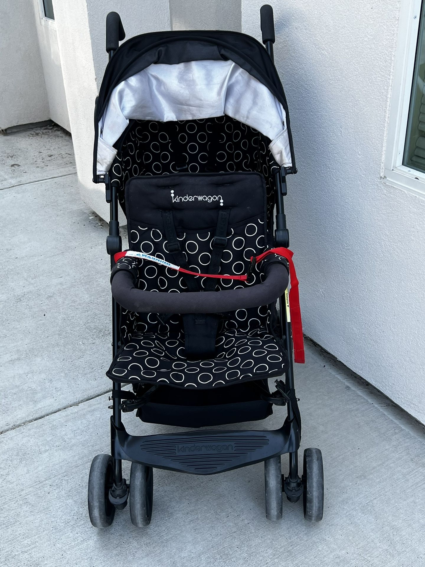 Kinderwagon carriola está usada, no ocupa mucho espacio. Pesa aproximadamente 25 libs.