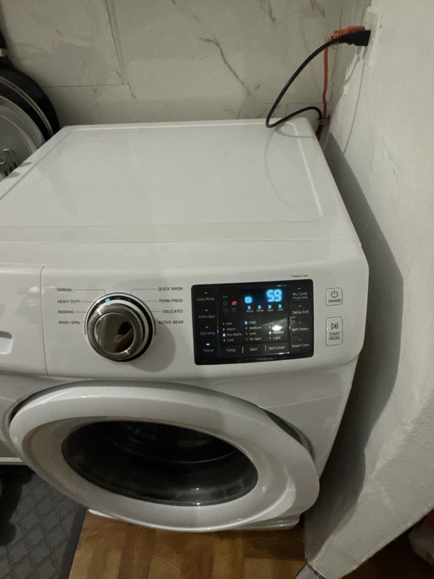 *Pedestal Underneath Was Bought Separately* (comes with) *Works Perfectly, No Issues* *Price Is Negotiable* *Available for Pickup 4/30* Samsung 4.2 cu. ft. Front Load Washer with VRT Technology in White. This high-efficiency washer features Vibration Reduction Technology (VRT) for quiet operation and a spacious 4.2 cubic foot capacity to handle larger loads with ease. Key features include: - Multiple wash cycles: Normal, Heavy Duty, Bedding, Delicates, Quick Wash, and more. - Digital display with intuitive touch controls and a cycle selection dial. - Self-Clean+ cycle to keep the drum fresh and clean. - HE (High Efficiency) detergent dispenser drawer. - Durable stainless steel drum. Condition: Pre-owned and in good working condition. The unit shows signs of normal use. Please note there is a small piece of tape on the lower access panel as shown in the photos. Perfect for a home laundry setup looking for reliability and performance.s