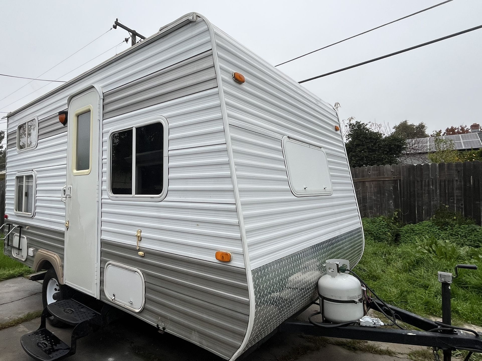 Air conditioner and heater Kitchen with fridge, freezer sink, stove, and microwave Bathroom with shower tub combo Full size bed with twin bed up top bunk style Battery and propane tank good set of tires Everything works 14 foot long add another 3 feet for the tongue total length 17 feet dry weight is 2516 pounds Im in South Sacramento