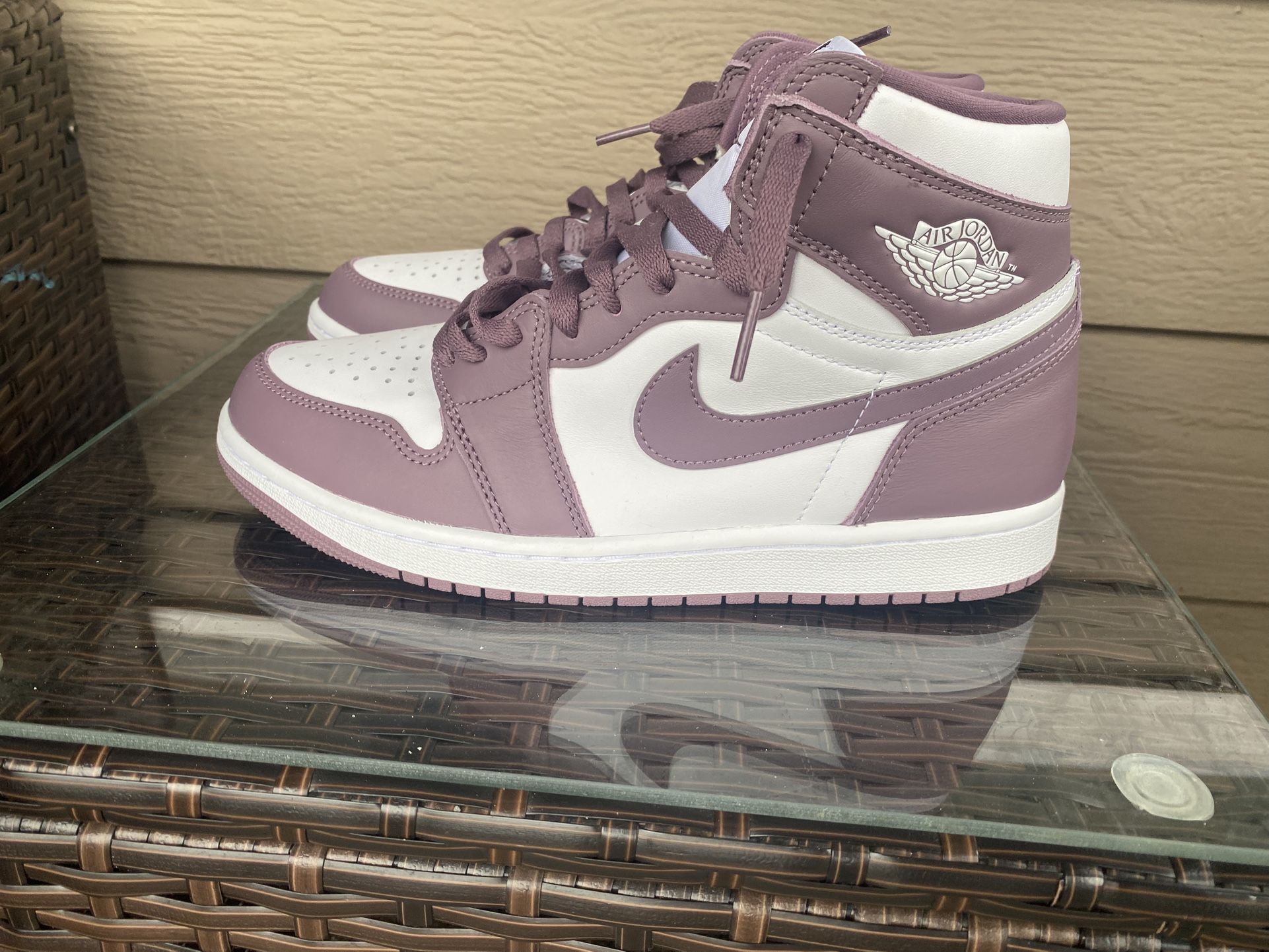 Air Jordan 1 Retro High OG Shoes - White / Mauve / White. COMES WITH BOX