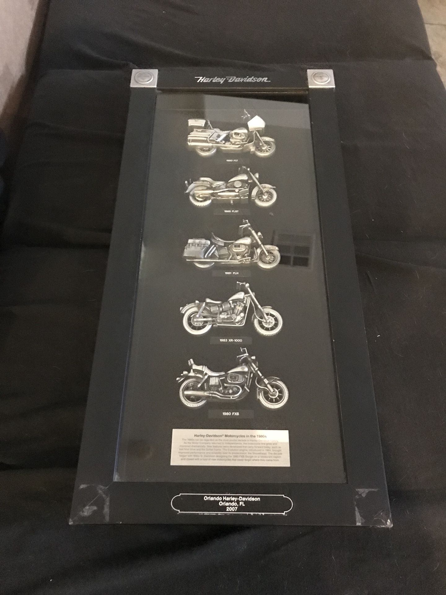 2007 Orlando Harley-Davidson Shadow Box wall hang, motorcycles of 1980s (missing bottom 2 corners as shown