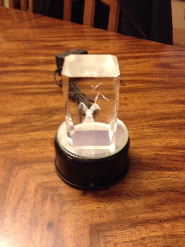 3 light up glass statues brand new. One dragon and two dolphin. $5 for each small one, $8 for the big dolphin one.