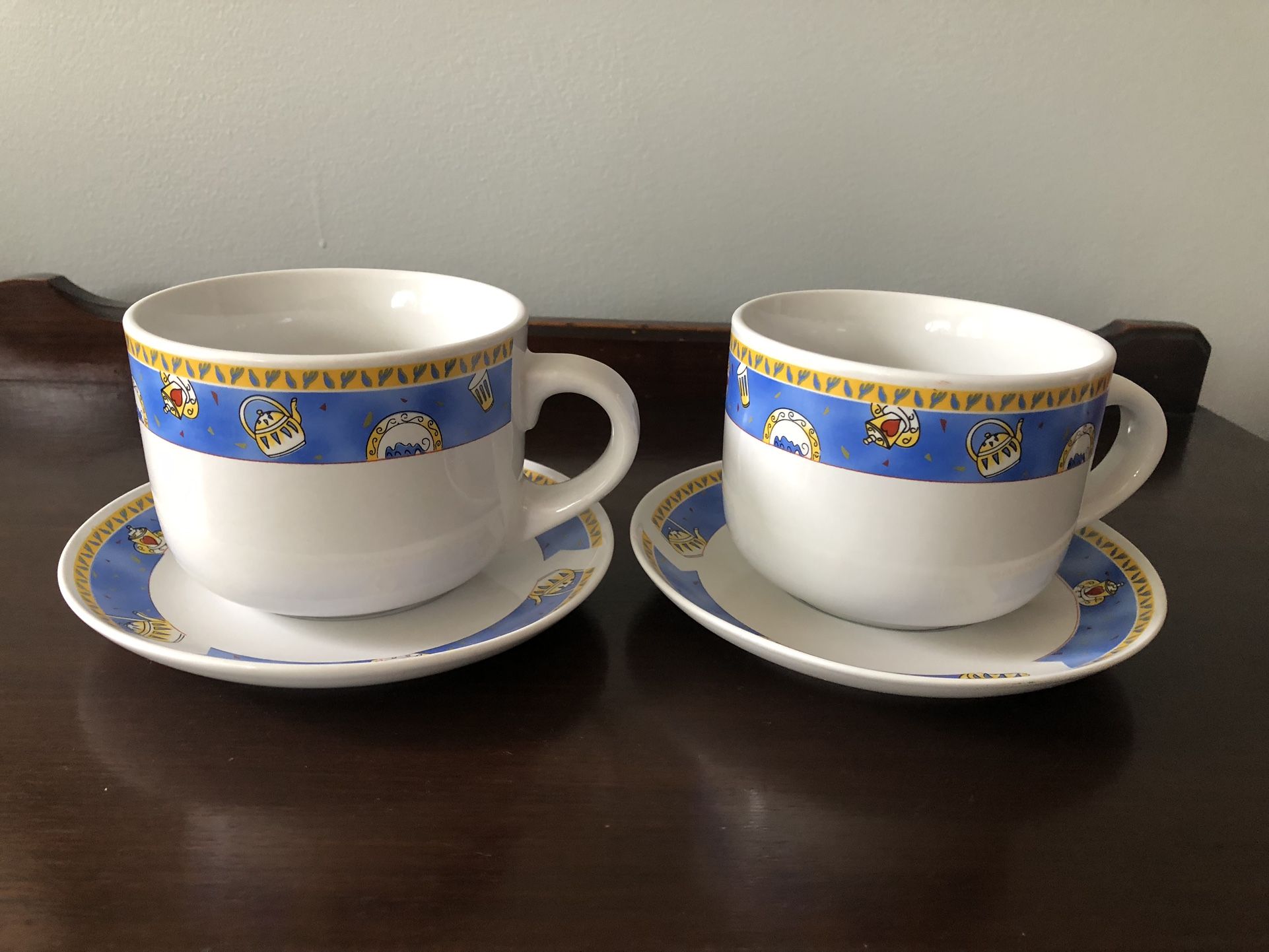 2 Soup Mugs Or Extra Large Coffee Mugs W/Saucers
