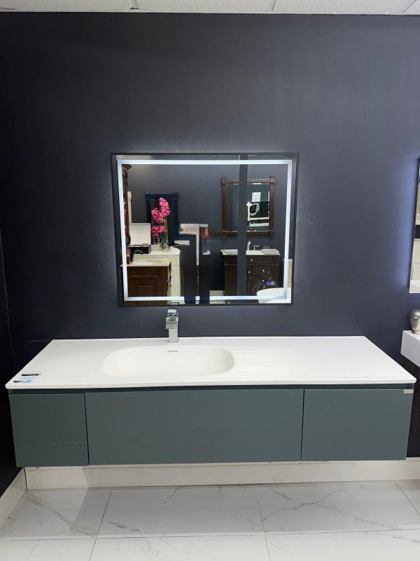 65" Single Sink Floating MDF Vanity With Solid Surface Top