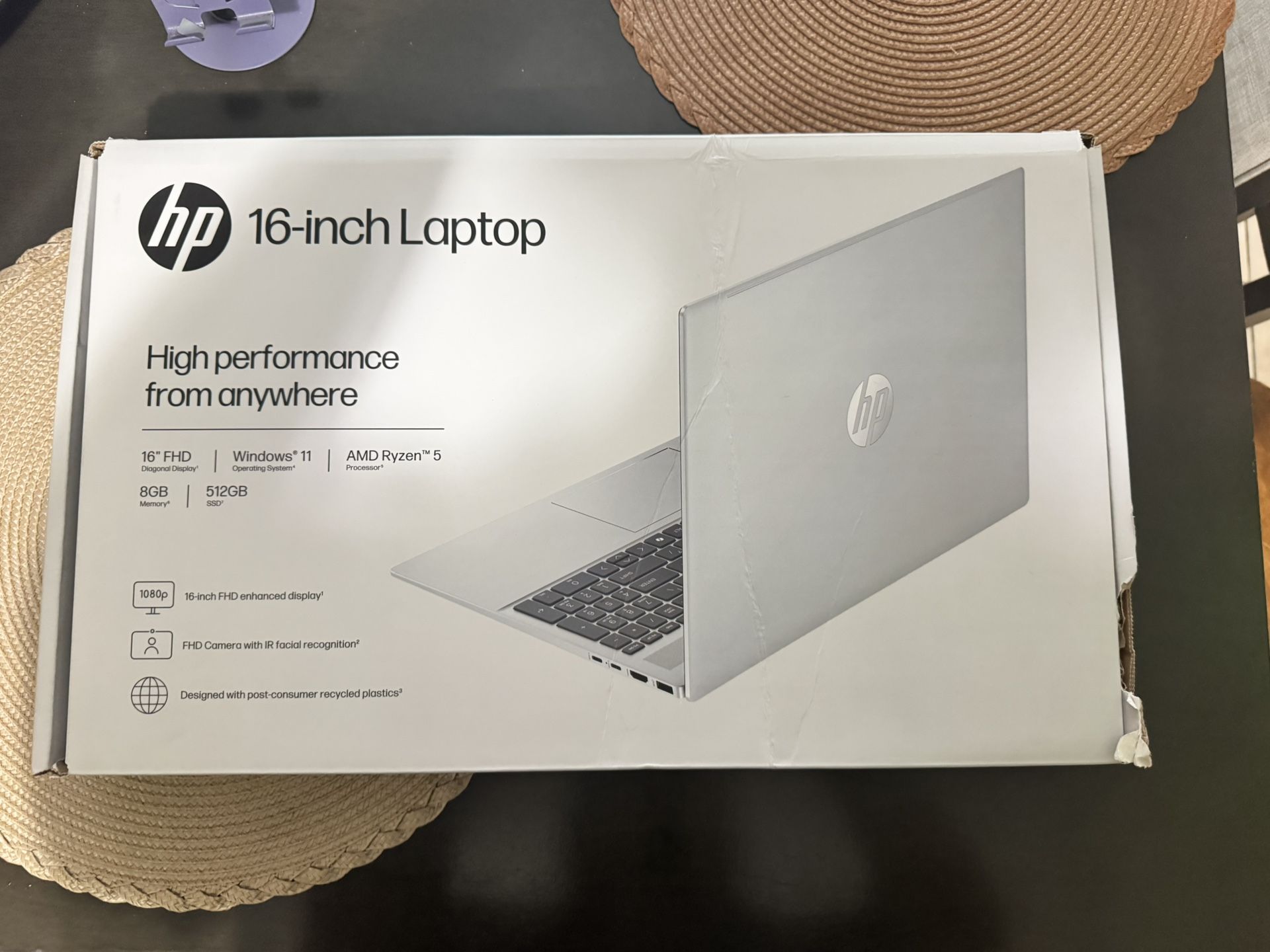 HP Laptop with a Ryzen 5 processor, 8gb RAM, 512gb SSD, and 2K IPS display, in Glacier Silver Local Pickup Only