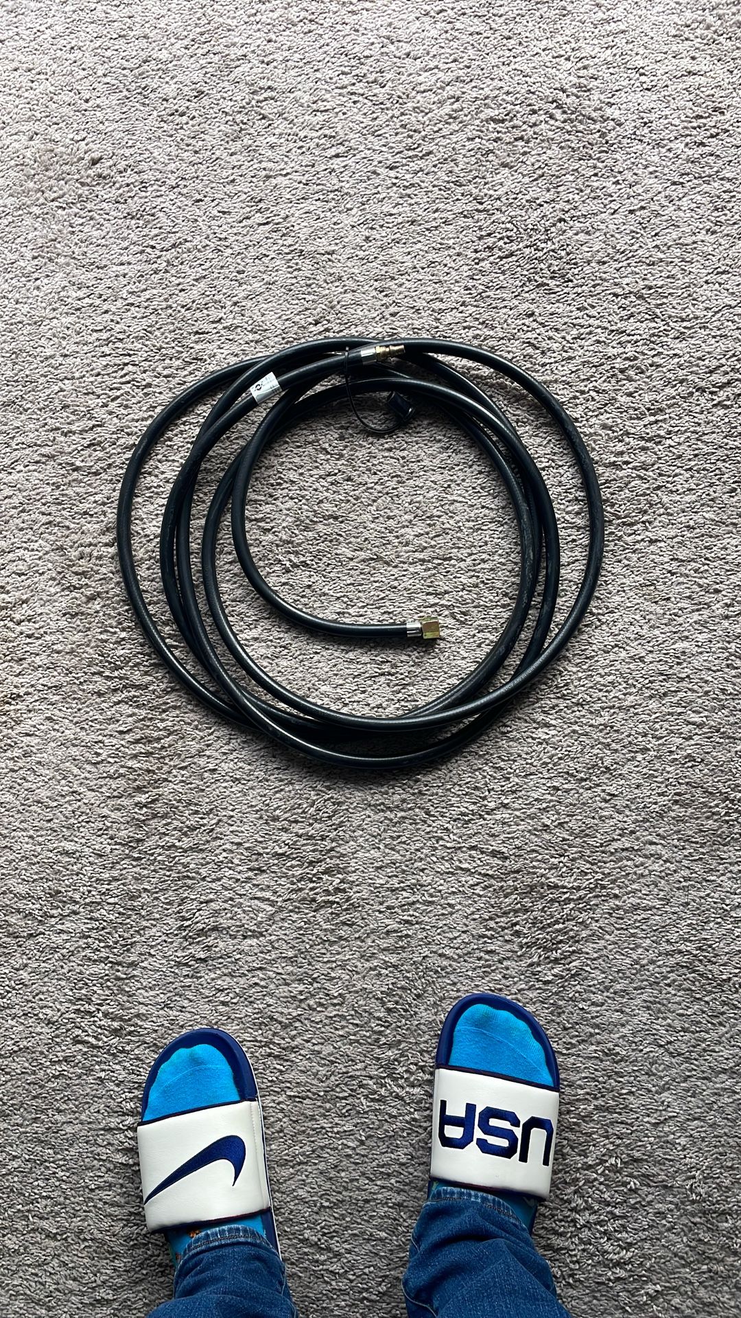 Hose has fittings for RV connection to fire pit. 20 feet long.
