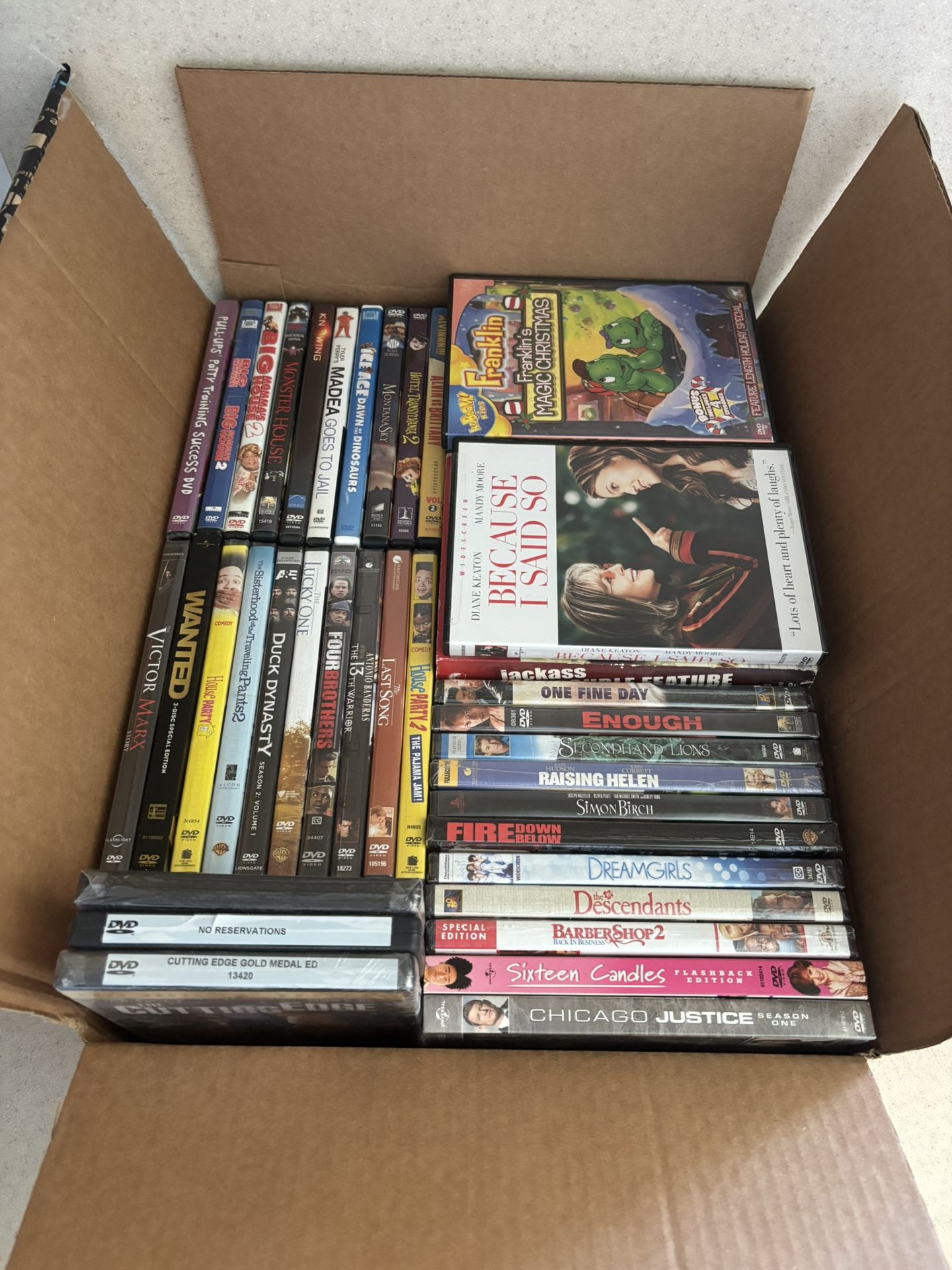 Huge lot of 54 dvds + 1 blu-ray. This lot includes: (33) NEW AND SEALED DVDS (1). NEW AND SEALED BLU-RAY (21) USED DVDS Assorted titles, but NO HORROR movies in this lot. Genres include: kids, romantic comedy, action, drama. -NOT SEPARATING, MUST BUY ALL -PICK UP WAIPIO/WAIKELE AREA -EXACT CASH preferred