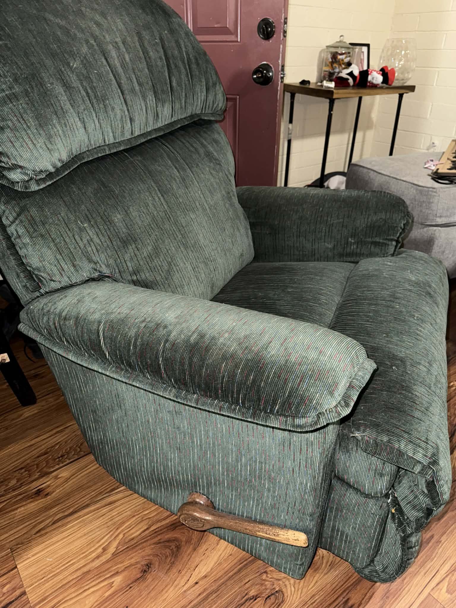 It needs some cleaning, there are no stains, it's not broken, it's in good condition. White pillow not included. I can deliver for an extra charge. I only accept cash.