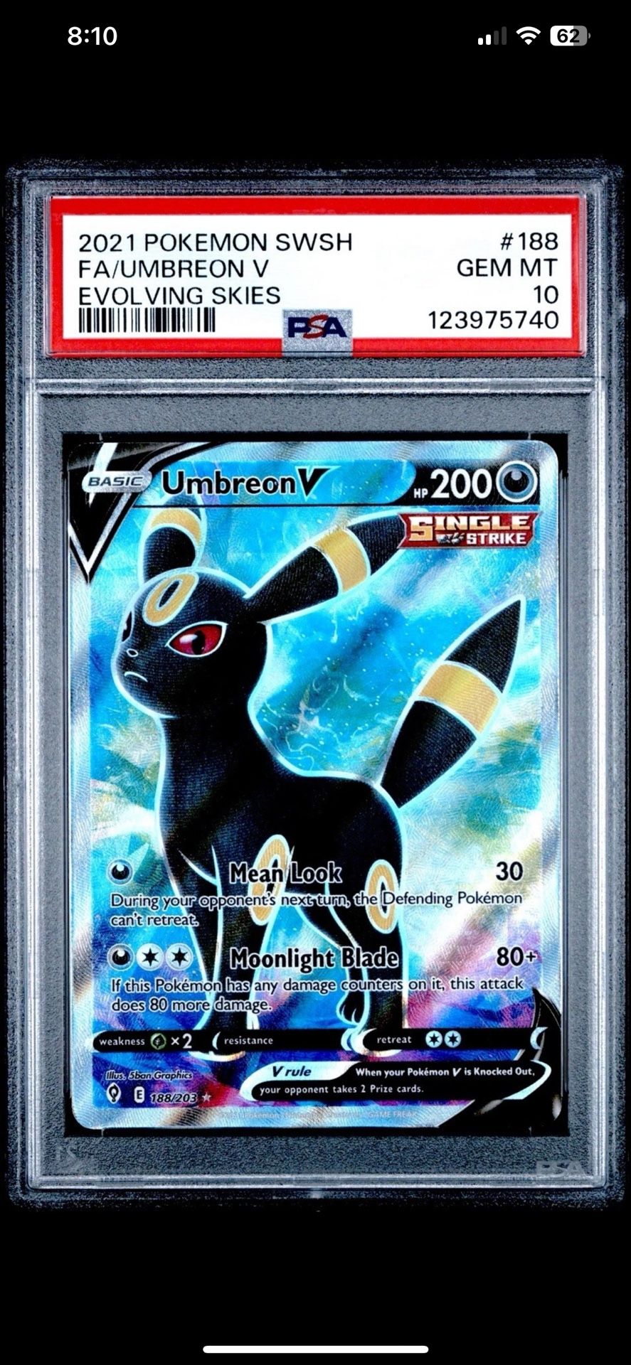 2021 Pokemon Sword and Shield Evolving Skies Umbreon V #188 PSA 10 GEM NEW CERT