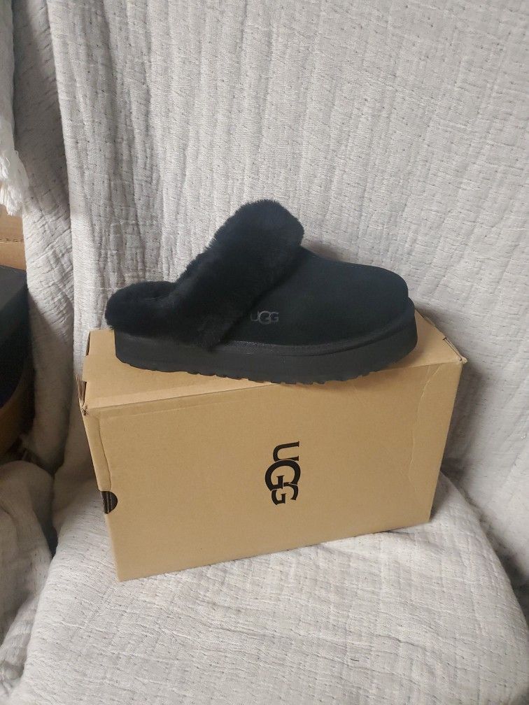 NEW UGG W DISQUETTE. BLACK FLUFFY SLIP ON SIZE 9.0 Sirius offers welcome