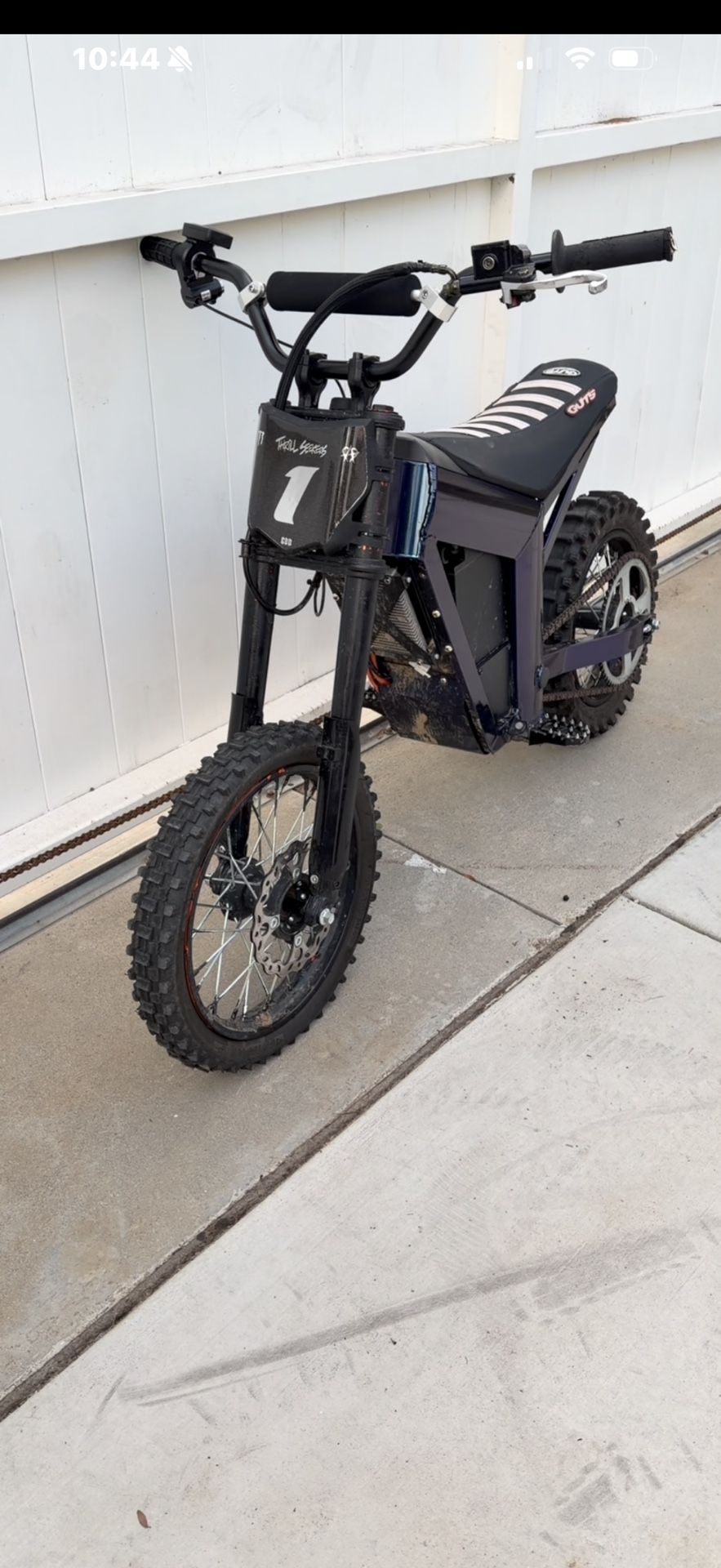Low miles tuned to go around 45 List of mods Dnm rear shock $190 Powder coat $300 Dunlop mx34 rear tire $55 Custom Surron throttle with display $70 Guts seat cover $80 Upgraded bars $40 Motocutz plate and decal $60 Rear fender $40 Pegs $25