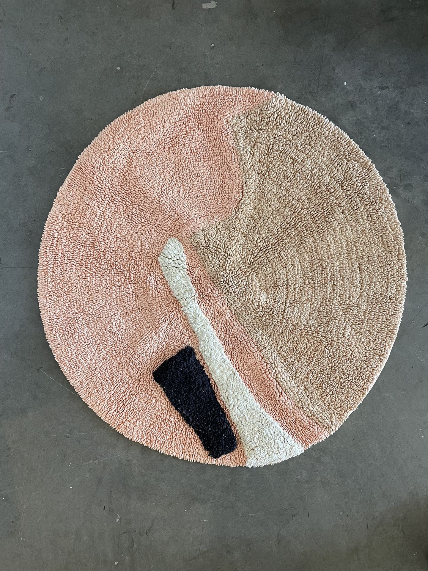 Cold Picnic’s first circular bathmat, Crop Circles rethinks how a bathmat can punctuate a space. No top, no bottom, no left, no right. Named for the enigmatic phenomenon that has inspired years of speculation, this design has the potential to transform your space anew every time you put it down. Pale peach with camel, cream and black 100% organic cotton bathmat Non-slip backing Gently used and cleaned Cotton yarn is tufted onto a cotton backing, leaving a surface of looped yarns. To achieve their bathmat's distinctive texture, portions of the surface pile are shorn into a super-soft shag, while other areas remain cushiony, rope-like loops. 28" x 28"