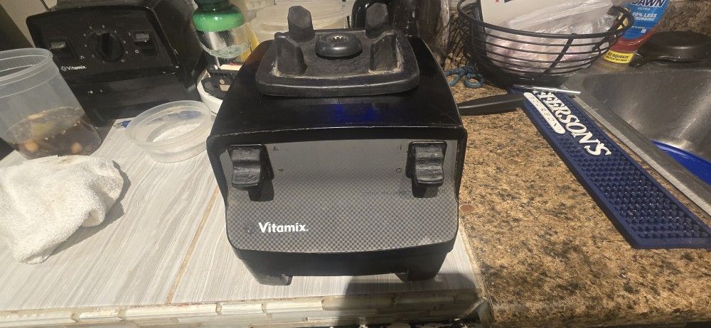 This is just the base blender, is household/comercial advertised and has a strong motor don't have the cup but can easily get one on Amazon for about $50 There is a Crack on the plastic but does not affect the way the blender works if interested you can test it's functionality. One of the pictures shows where the Crack is located