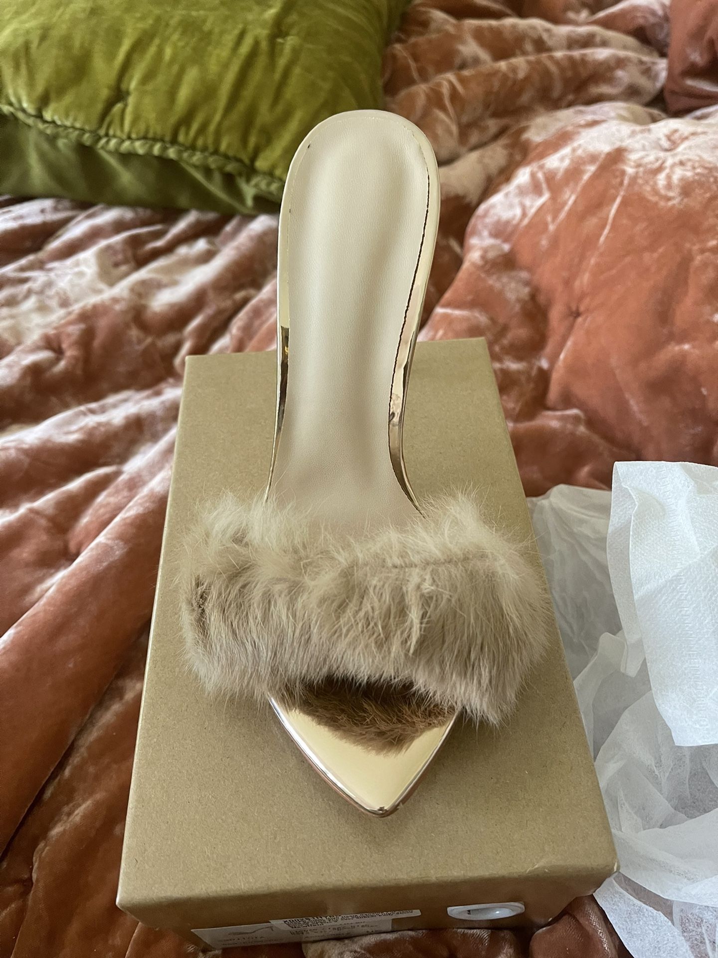 New never worn rose gold fur mules. Size 8 but fits more like a 6.5/7. Which is why I’m selling them.