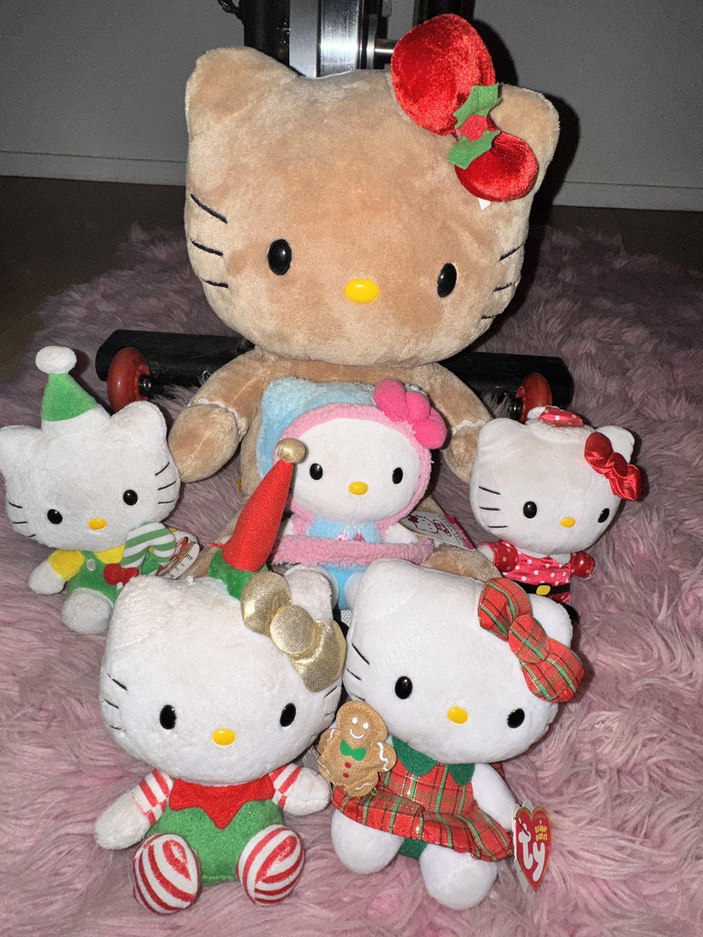 Hello Kitty Holiday Plush Bundle. Comes with 5 small TY Hello Kitty Plushes and Large 2012 Build A Bear Gingerbread Hello Kitty (RARE!) Asking $60 for ALL. NO LOW BALLERS. The Build A Bear one is worth more than $60 alone.