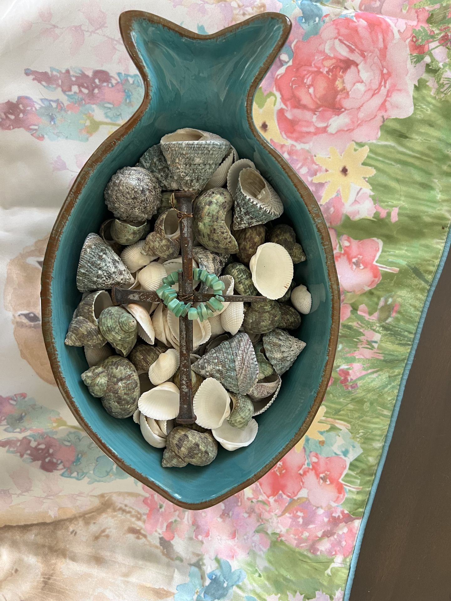 New, been stored, Beautiful coastal fish-shaped serving bowl made of durable melamine. Glossy turquoise finish with distressed brown edging — perfect for beach house, lake house, patio, or summer entertaining. Lightweight but sturdy, great for outdoor use, parties, or decorative display. Can also be styled as shown with shells for a coastal centerpiece. Nice for Easter. NW Bakersfield pickup, Olive Drive and Calloway area • Excellent condition • No cracks or chips • Easy care • Not microwave safe (melamine)