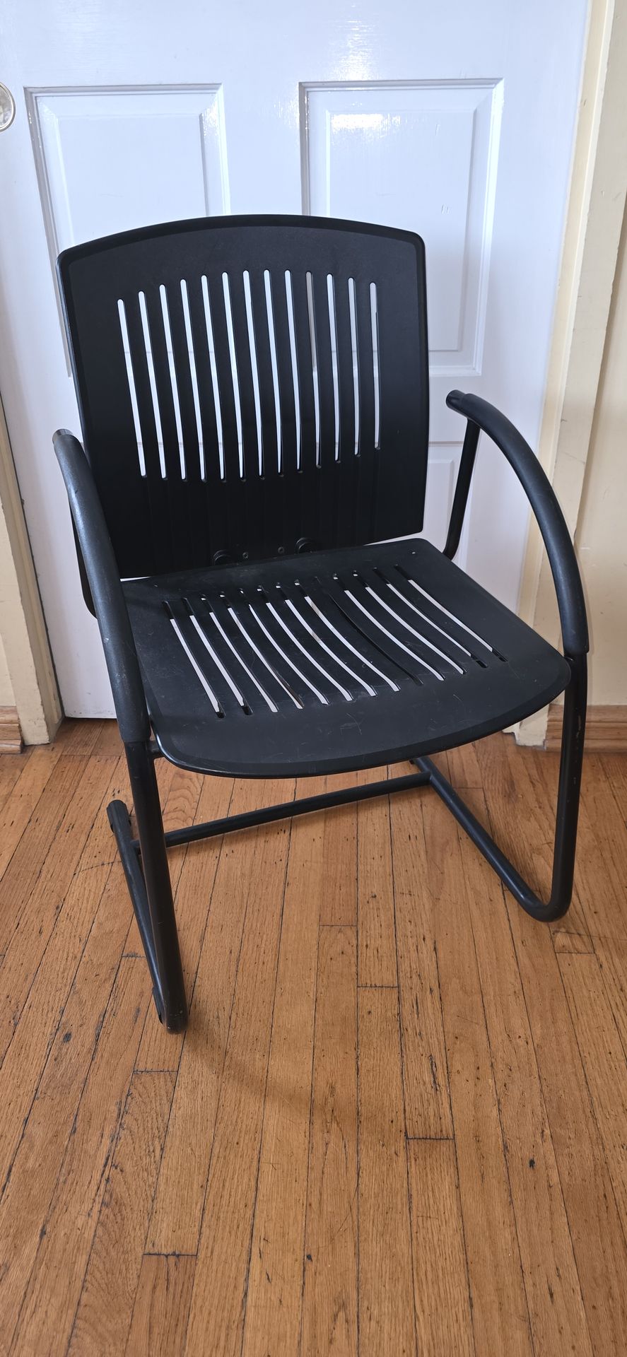 One black desk chair Office, extra, dining room, bedroom, etc Heavy duty Metal & thick plastic Seat base 17 1/2" wide 18" deep Pick up only West covina near orange and cameron Firm price no holds