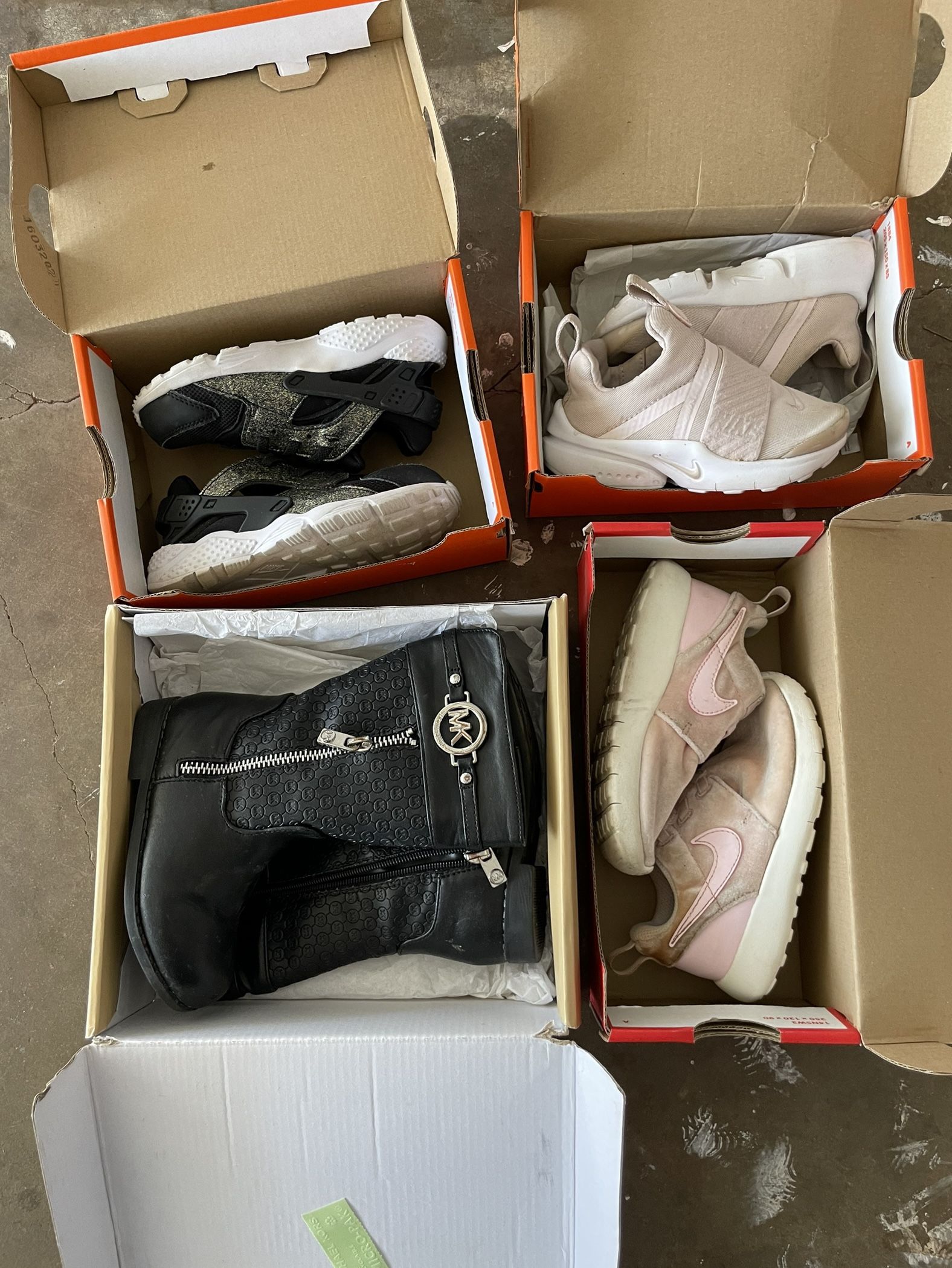 For sale mk boots size 8 $5 Black Nike size 10 $10 Both pink Nike size 8 $ 10 each Take all for $30